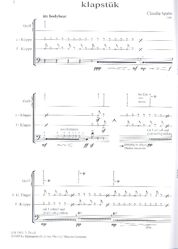 Klapstuek für Baßblockföte solo