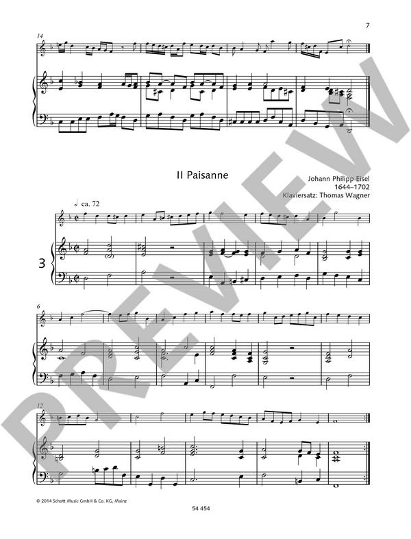 ersetzt ED21169-50 Koppelkamm-Martini, Gerda, ed 26 leichte Stücke M.-A. Charpentier: Prélude J.P. Eisel: Divertimento d-Moll J.P. Eisel: Il Paisanne J. Fischer: Bourrée A. Krieger: Menuett J. Krieger: Bourrée J. Clarke: Prince of Denmark's March J. Clarke: Trumpet Tune A. Vivaldi: Allegro aus Der Frühling A. Vivaldi: Largo aus Der Winter J.A. Hasse: Bourrée Anonymus: Greensleeves to a Ground C.W. Gluck: Reigen seliger Geister J. Haydn: Andante J. Hook: Allegretto W.A. Mozart: Der Vogelfänger bin ich, ja W.A. Mozart: Das klinget so herrlich F. Kuhlau: The Last Rose of Summer (Thema) T. Böhm: Nel cor più non mi sento (Thema) J. Offenbach: Barcarole W. Popp: Andantino P.A. Genin: Karneval in Venedig (Thema) A. Sullivan: Hornpipe E. MacDowell: To a Wild Rose A. Gretchaninoff: In der Dämmerung E. Satie: Gymnopédie No. 1