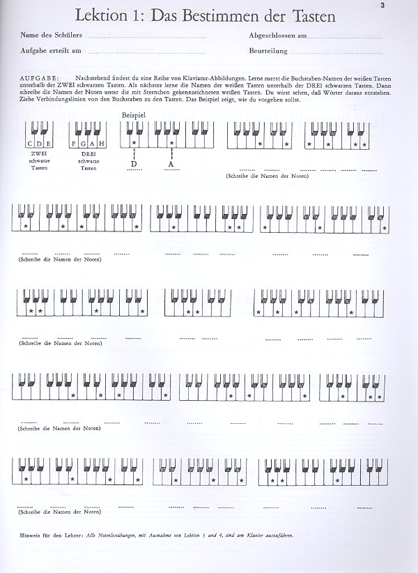 A beginner's tutor book for the piano starting with the names and locations on the keyboard of notes and moving through to accidentals, note values and how to construct chords.