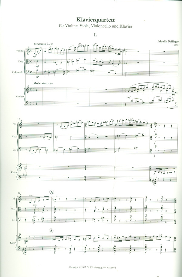| Untertitel: | für Violine, Viola, Violoncello und Klavier Stimmen |