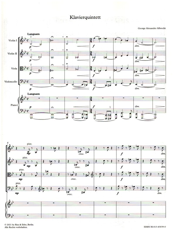 | Untertitel: | für 2 Violinen, Viola, Violoncello und Klavier Partitur und Stimmen |