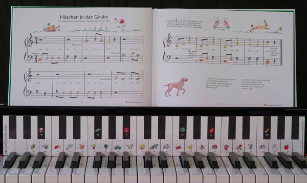 Schoeller Olsen, Sandra, Illustrationen für Kinder, Eltern und Großeltern mit Tastenschablone 28 bekannte Kinderlieder, 28 Aufgaben zum Notenlernen, Videomodul mit 28 Videoclips für PC, iPad und Handy zum Downloaden auf www.klavierundspass.de Kann sowohl zu Hause als auch in der Musikschule verwendet werden. Das Buch verfügt über eine Auswahl an verschiedenen bekannten Liedern für Kinder aller Altersgruppen. Die bunte Figurenwelt als Lehrmethode bildet auch die Basis von Band 2, wo sich das Spiel des Kindes nun erheblich weiterentwickelt. Das Buch bietet zudem 28 Aufgaben zum Notenlernen, die den Übergang von der bunten Figurenwelt zur traditionellen Notenwelt erarbeiten. Denn diese traditionelle Notenwelt ist nach wie vor eine universelle Musiksprache. Die bunten Figuren helfen lediglich, einen leichteren Zugang zu dieser Musiksprache zu finden.