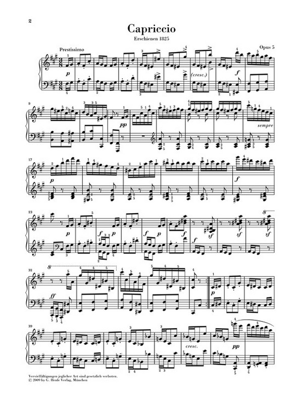 Scheideler, Ullrich, ed Elvers, Rudolf, ed Herttrich, Ernst, ed Groethuysen, Andreas, Fingersatz Theopold Hans-Martin, Fingersatz Capriccio Scherzo h-Moll Scherzo (op.119, andere Version) Perpetuum mobile op.119 Rondo capriccioso op.14 Fantasie E-Dur op.15 Trois Fantaisies ou Caprices op.16 Phantasie fis-Moll op.28 Sonate E-Dur op.6 7 Charakterstücke op.7 Sonate B-Dur op. post.106