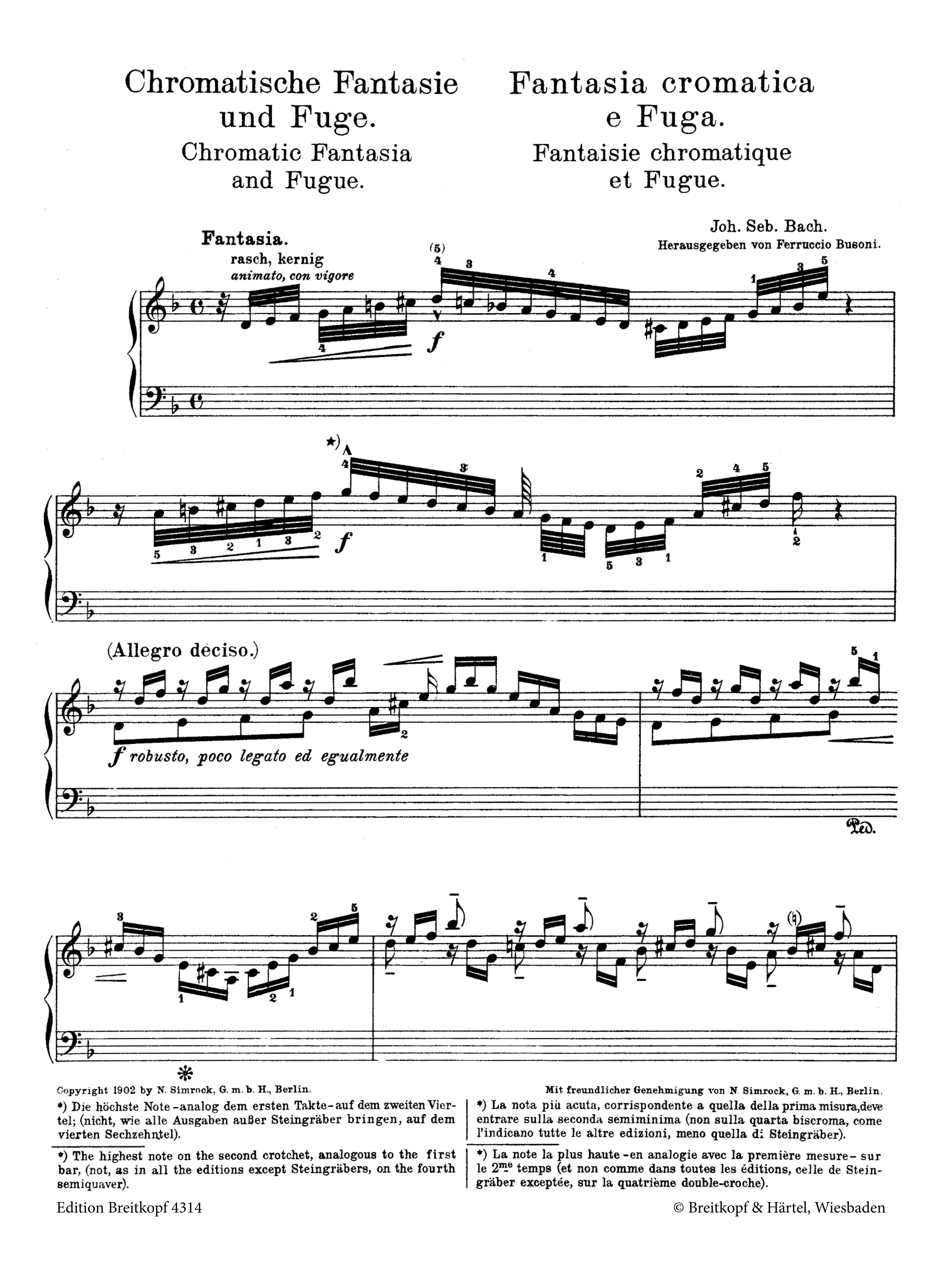 Busoni, Ferruccio, ed Chromatische Fantasie und Fuge BWV903 Capriccio über die Abereise des geliebten Bruders BWV992 Fantasie und Adagio G-Dur BWV968 Fuge c-Moll BWV906 Präludium, Fuge und Allegro BWV998