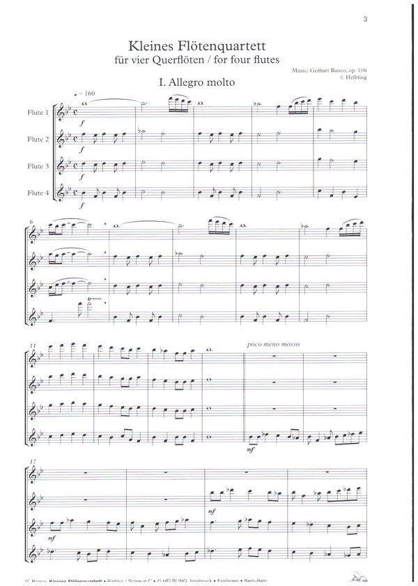 | Untertitel: | für vier Querflöten Partitur und Stimmen |