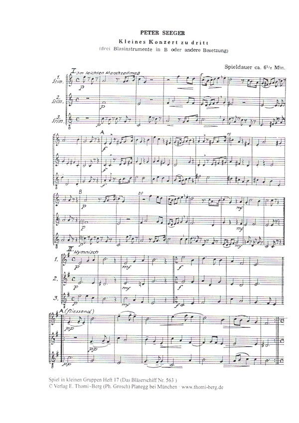 | Untertitel: | für 3 Blasinstrumente in B Partitur und Stimmen |