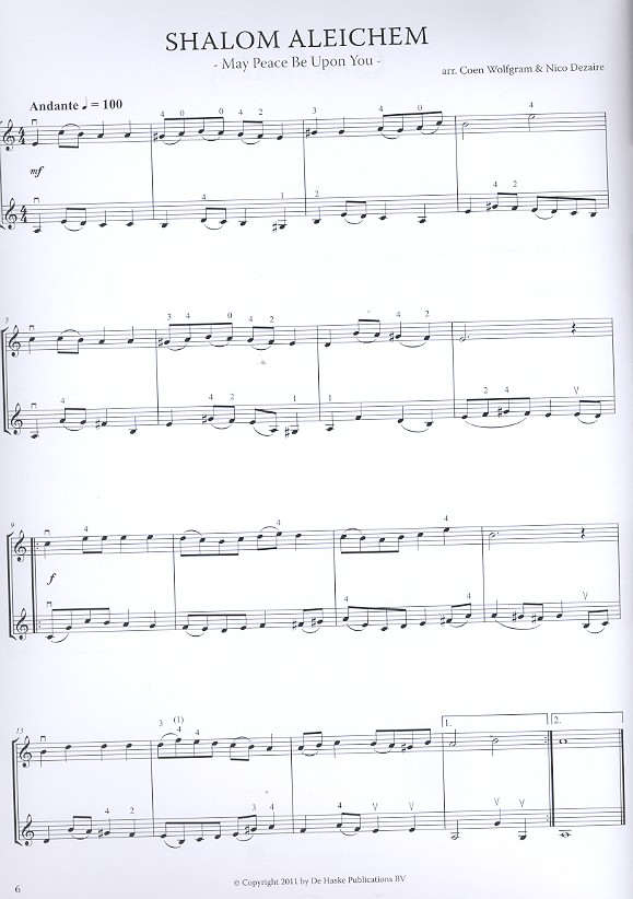 Wolfgram, Coen, arr. Dezaire, Nico, arr. Shalom aleichem Ata ehad Adir hu Avinu Malkenu Hatikva Erev ba Utsu etsa Hine ma tov Ma averech Hava nagila Klezmer