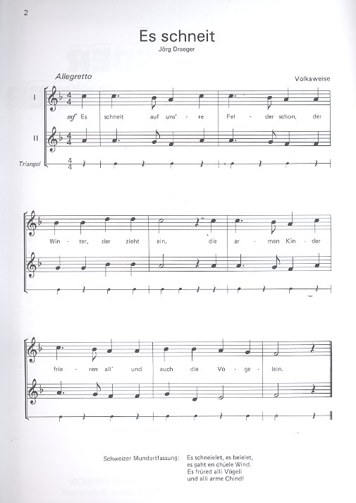 Es schneit A a a der Winter der ist da Schneeflöckchen Weißröckchen ABC die Katze lief im Schnee Lasst uns froh und munter sein Guter braver Nikolaus Jingle Bells Es wird scho glei dumpa Aba heidschi bumbeidschi Kling Glöckchen kling O Tannenbaum Tochter Zion freue dich Lobet und preiset Dona nobis pacem Hirtenlied Alle Jahre wieder Wohl mitt's in der Nacht Am Weihnachtsbaum die Lichter brennen Stille stille kein Geräusch gemacht