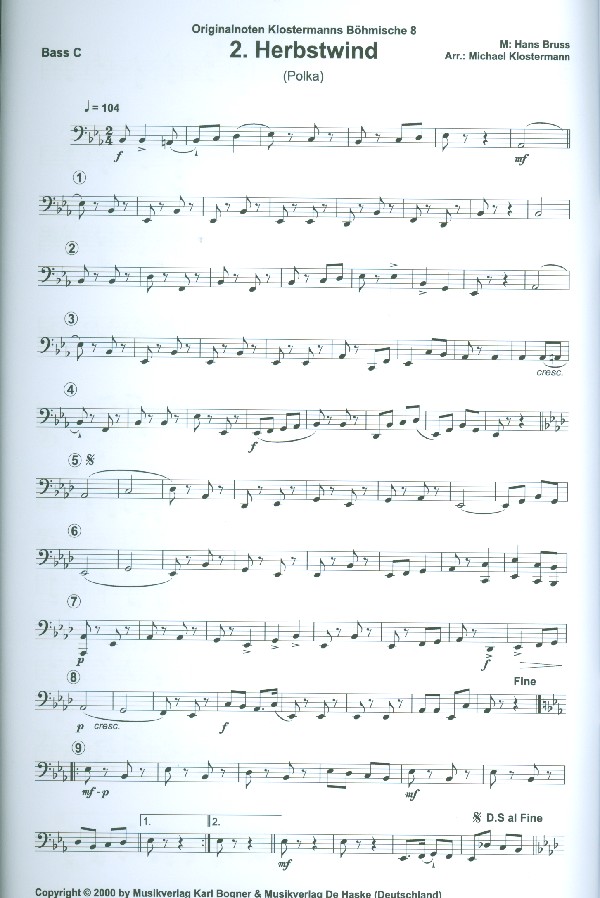 | Untertitel: | für 8-x Blasinstrumente (Schlagzeug ad lib) Bass in C |
