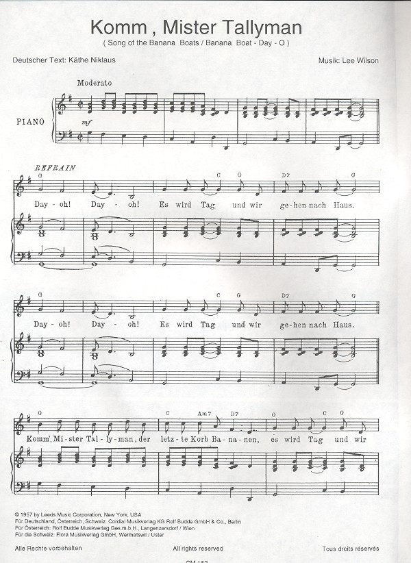 Song of the Banana Boats Banana Boat-Day-O Niklaus, Käthe, dt. Text