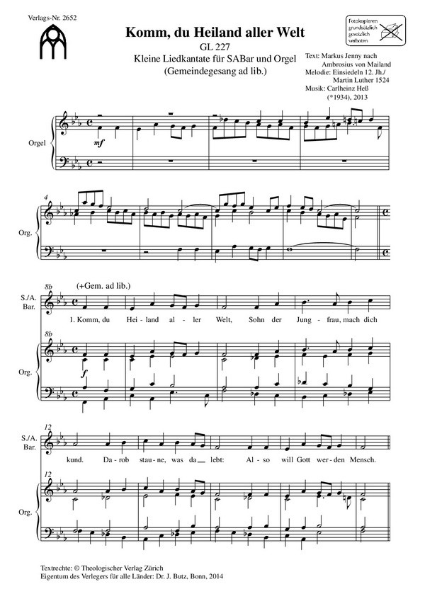 Jenny, Martin, Text (nach Ambrosius von Mailand) Melodie nach Martin Luther Kleine Liedkantate