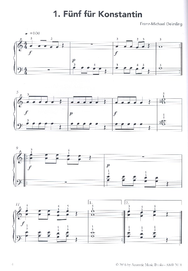 Fünf für Konstantin Kleiner Ausflug Die Trauminsel Kleines Pedalstück Elfmeter Pausen Daumendribbling Kleines Klavier-ABC Großes klavier-ABC Dreiklänge Träumerei Rumpel-Pumpel-Halbtonschritt Schneller, schneller, am schnellsten Indian Dance Fast eine Sonatine