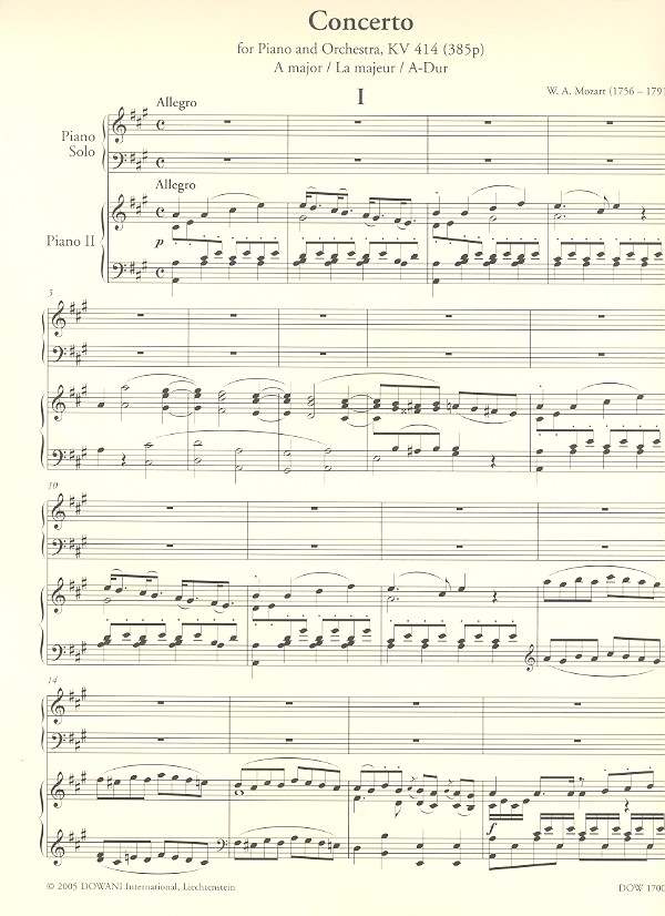 Konzert A-Dur KV414 für Klavier und