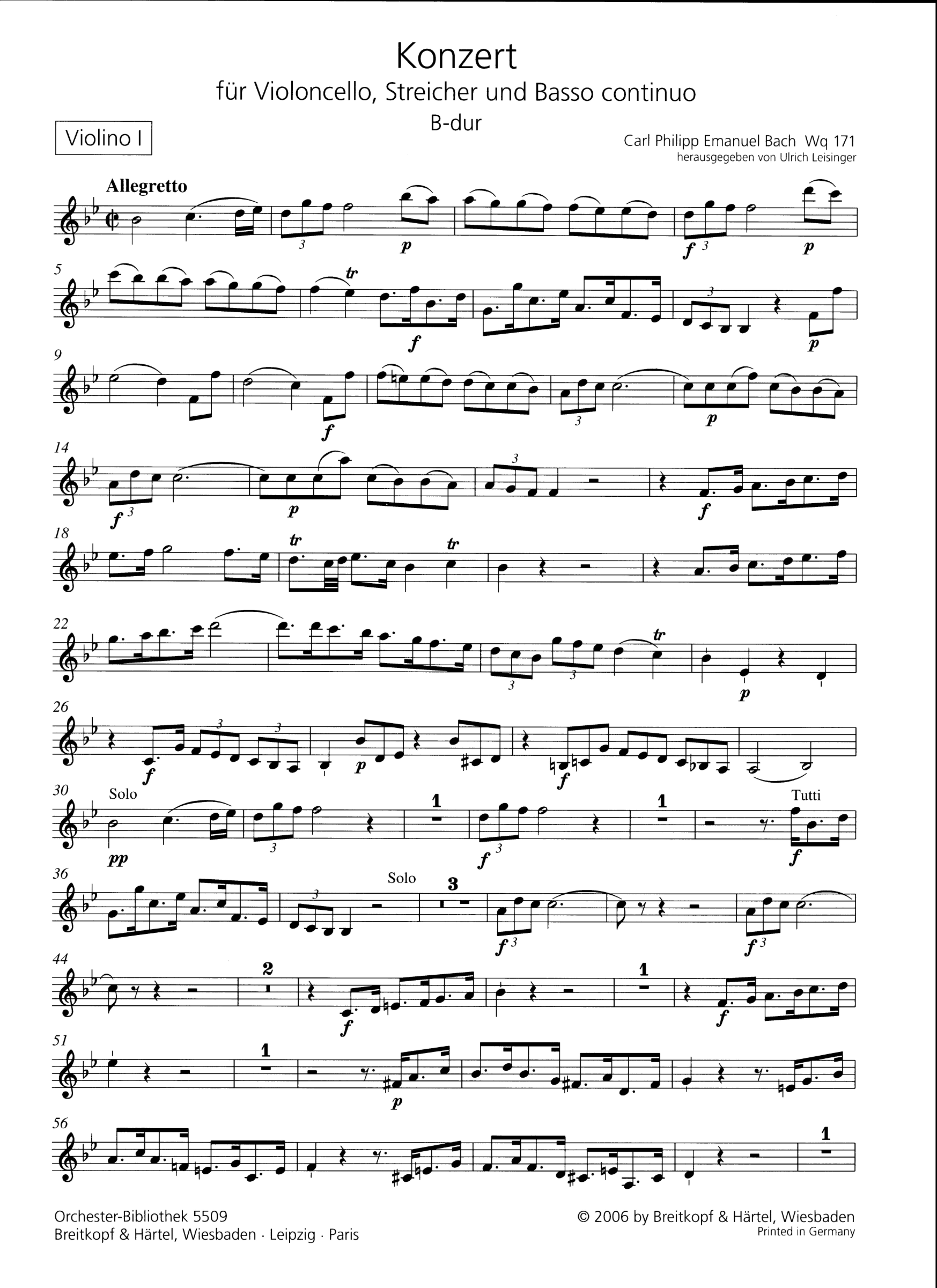 | Untertitel: | für Violoncello, Streicher und Bc Violine 1 |