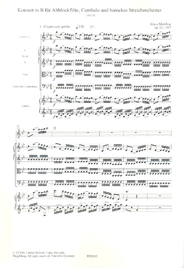 | Untertitel: | für Altblockflöte, Cembalo und Streichorchester Partitur |
