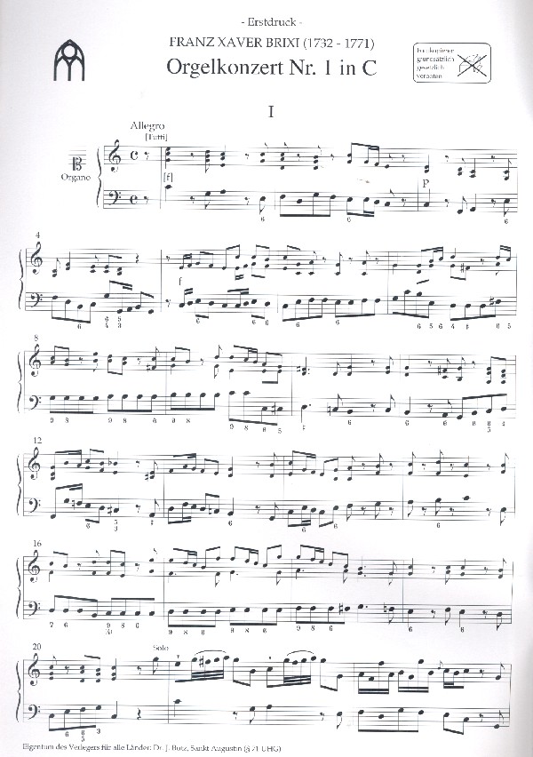 | Untertitel: | Für Orgel, Streicher, Trompeten in C und Pauken ad lib Orgelstimme |