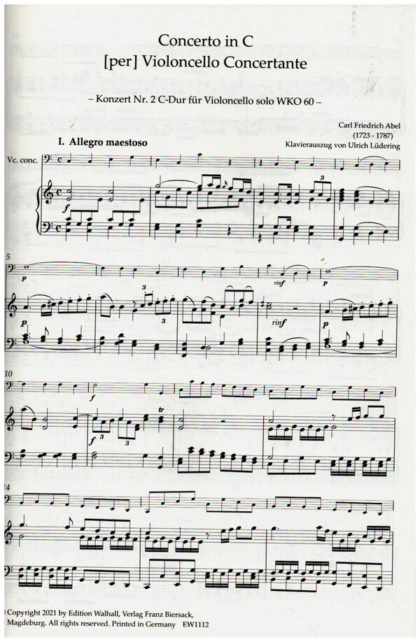 | Untertitel: | für Violoncello solo, 2 Oboen, 2 Hörner und Streicher Klavierauszug mit Solostimme |