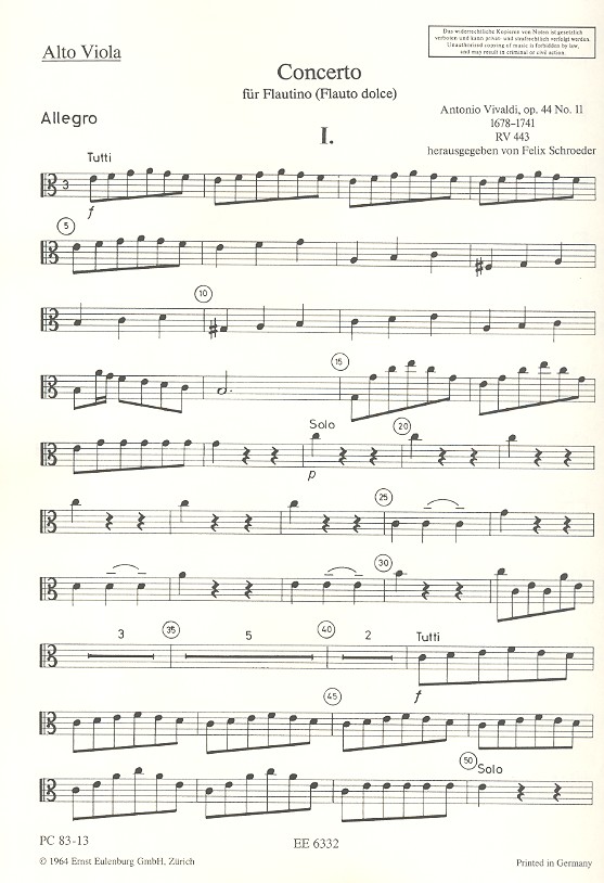 | Untertitel: | für Flautino und Streichorchester Viola |