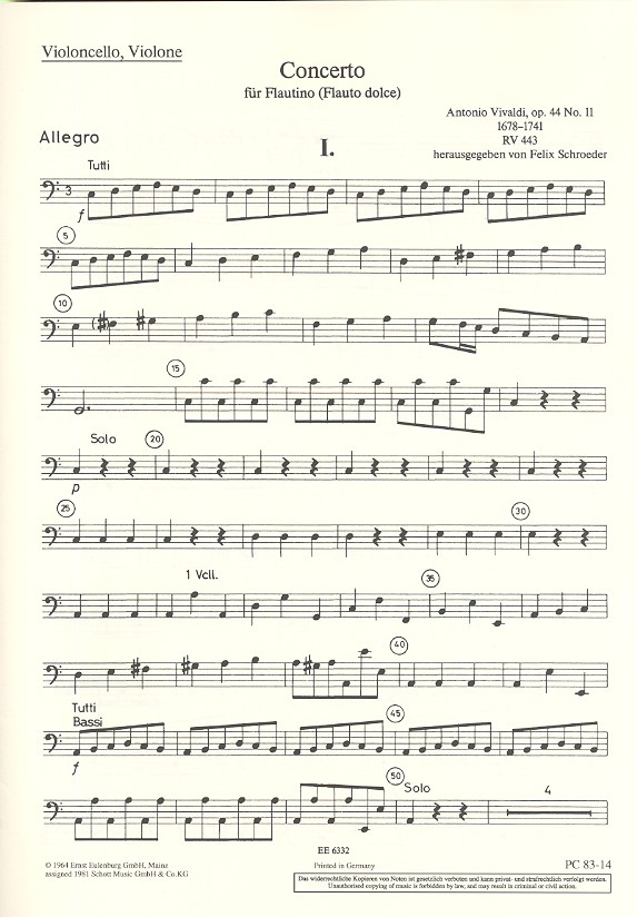 | Untertitel: | für Flautino und Streichorchester Cello/Bass |