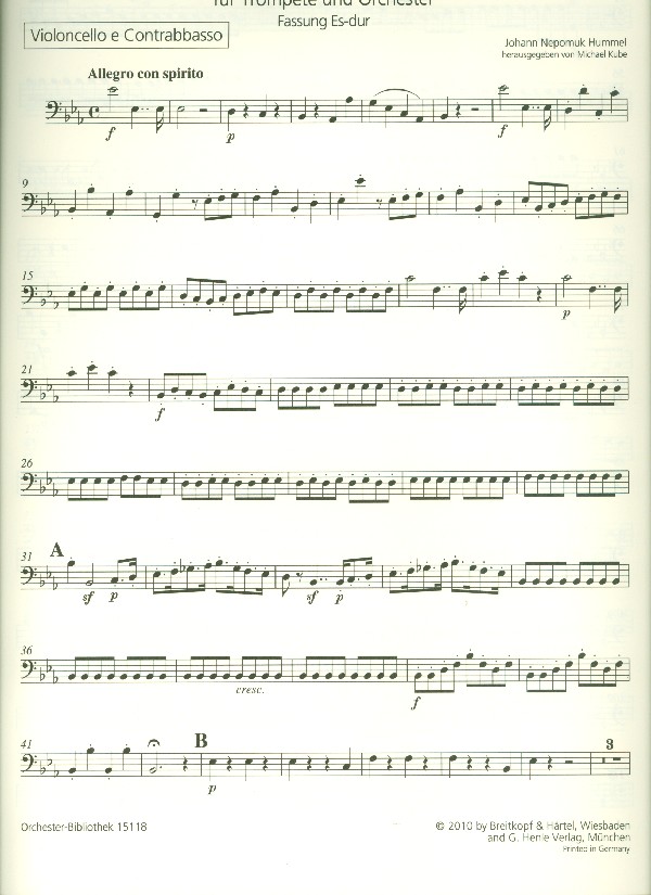 | Untertitel: | für Trompete und Orchester Violoncello / Kontrabass |
