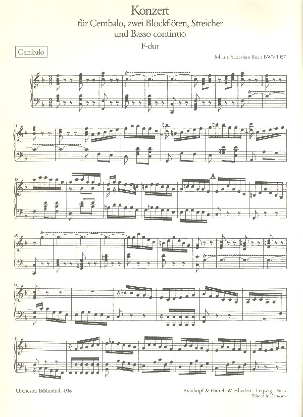 | Untertitel: | für Cembalo, 2 Flöten und Streicher Cembalo |