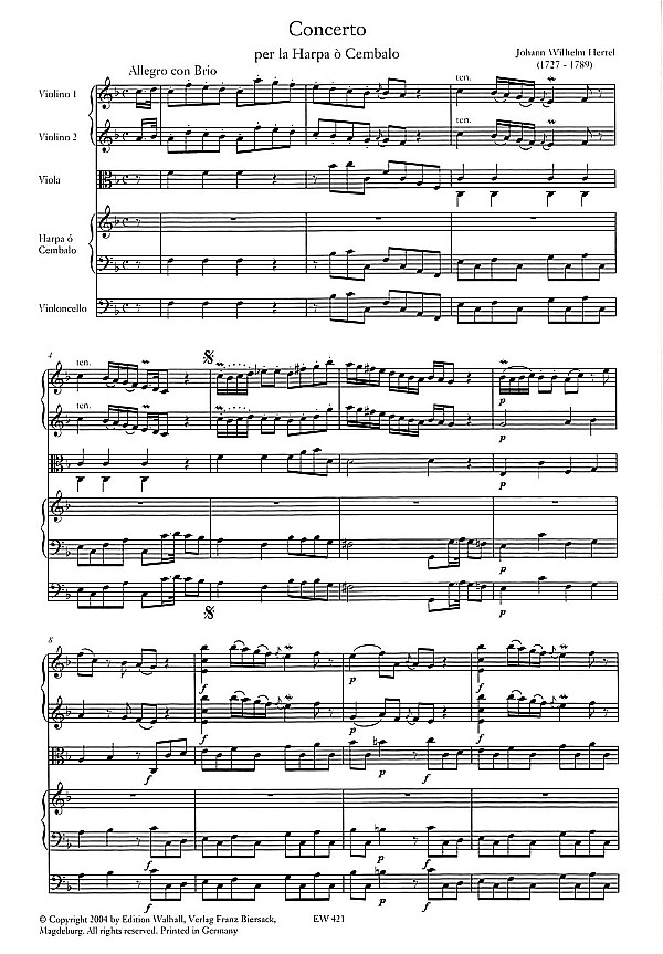 | Untertitel: | für Harfe (Cembalo), 2 Violinen, Viola und Violoncello Partitur |