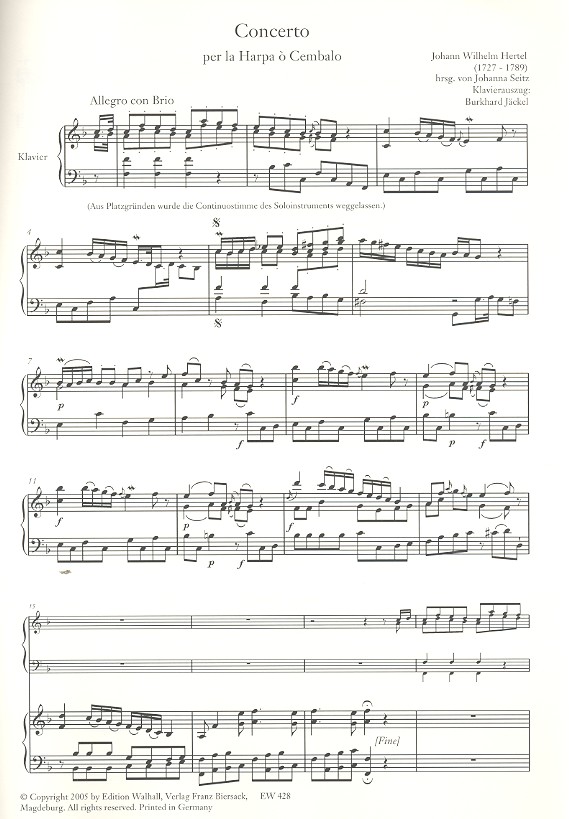 | Untertitel: | für Harfe (Cembalo), 2 Violinen, Viola und Violoncello für Harfe (Cembalo) und Klavier |