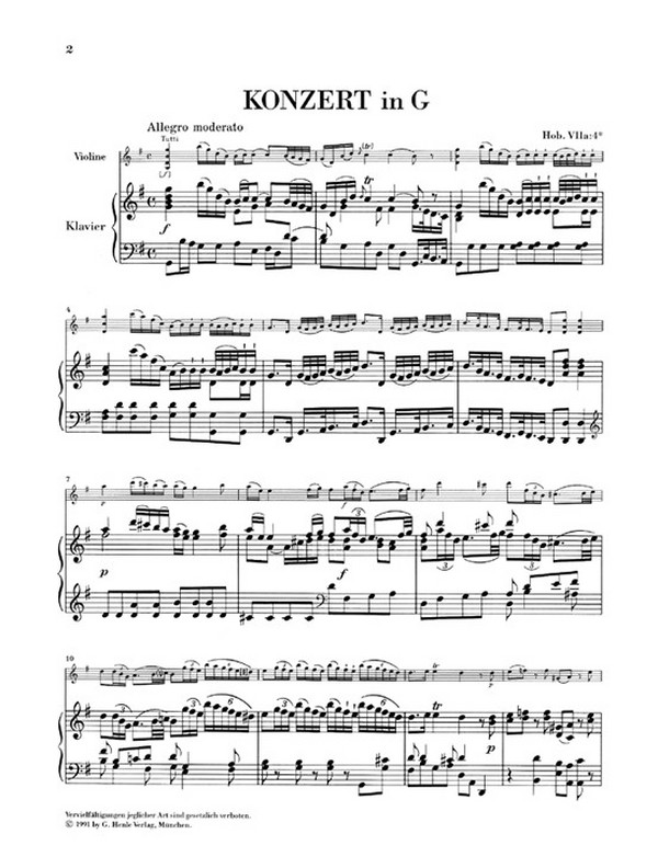 Konzert G-Dur Hob.VIIa:4 für Violine und Orchester