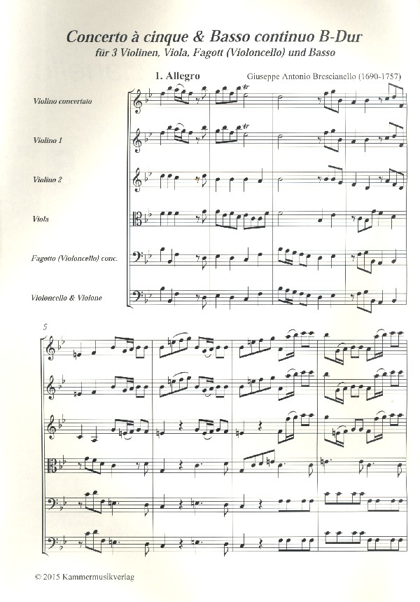 | Untertitel: | für Fagott (Violoncello), Violine, Streicher und Bc Partitur und Stimmen (Streicher 1-1-1-1-1) |