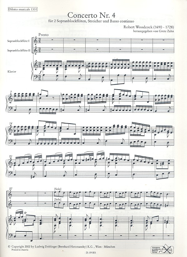 | Untertitel: | für 2 Sopranblockflöten, Streichorchester und Bc Ausgabe für 2 Sopranblockflöten und Klavier |