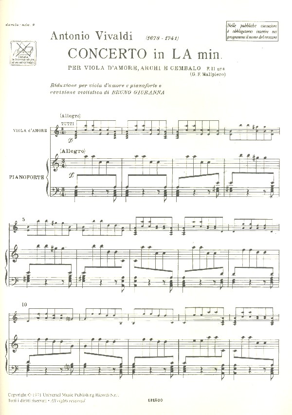 | Untertitel: | Viola d* amore und Streicher für Viola d'amore und Klavier |