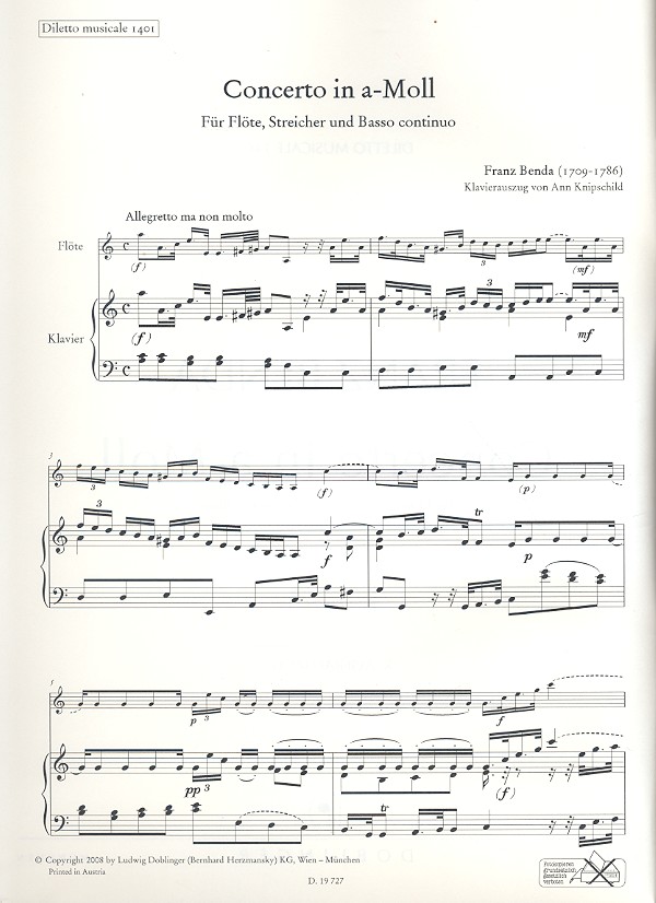 | Untertitel: | für Flöte, Streicher und Bc Flöte und Klavier |