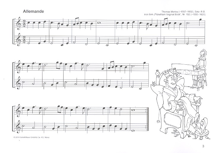 Butz, Rainer, arr. Beliebte Melodien großer meister aus 5 Jahrhunderten Charpentier: Prélude Morley: Allemande Arbeau: Fackeltanz Händel: Alla Hornpipe Händel: Menuett 1 Händel: Menuett 2 Anon./Praetorius: Courante Anon./Respighi: Siciliana Falconieri: Villanella Schubert: Andantino Haydn: Chorale St. Antoni Beethoven: Thema von Paisiello Mozart: Adagio Mozart: Menuett Schubert: Entre'acte Grieg: Andante pastorale Grieg: Solveigs Lied Dvorák: Slawischer Tanz Strawinsky: Drehorgelmelodie Volksweise: Rumänischer Volkstanz Volksweise: Ungarisches Volkslied Volksweise: Lied des Trunkenbolds Anon./Playford: James II. and Prince Ruperts March Molinaro: Balletto detto "Il Conte Orlando" Molinaro: Saltarello zu "Il Conte Orlando" Händel: Menuett aus der "Wassermusik" Händel: Lentement Bach: Gavotte en Rondeau Beethoven: Adagio cantabile Paganini: Caprice Mendelssohn: Andante tranquillo Dvorák: Largo Tschaikowsky: Moderato semplice Grieg: Matrosenlied Grieg: Lyrischer Walzer Brahms: Ungarischer Tanz Clarke: Trumpet Tune Clarke: Trumpet Voluntary Mozart: Andante grazioso Schubert: Allegretto Brahms: Walzer Glinka: Jota aragonesa Seiber: Foxtrott Kreisler: Liebesleid Debussy: Golliwogg's Cakewalk Seiber: Tango Schostakowitsch: Jazz-Walzer
