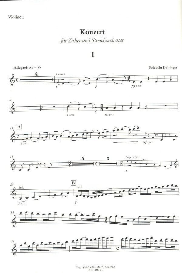 | Untertitel: | für Konzertzither und Streichorchester Violine 1 |