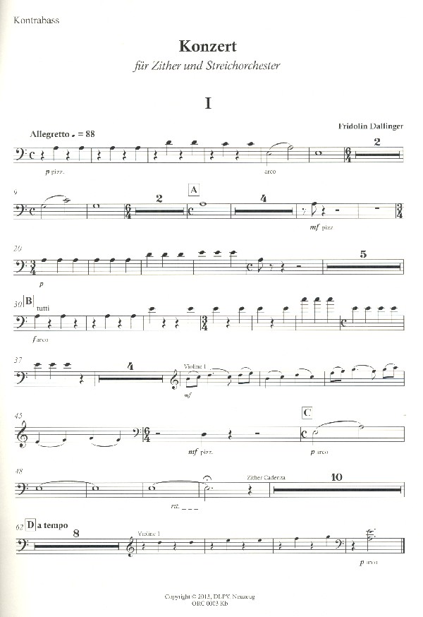 | Untertitel: | für Konzertzither und Streichorchester Kontrabass |
