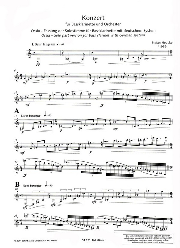 | Untertitel: | für Baßklarinette und Orchester für Baßklarinette und Klavier |