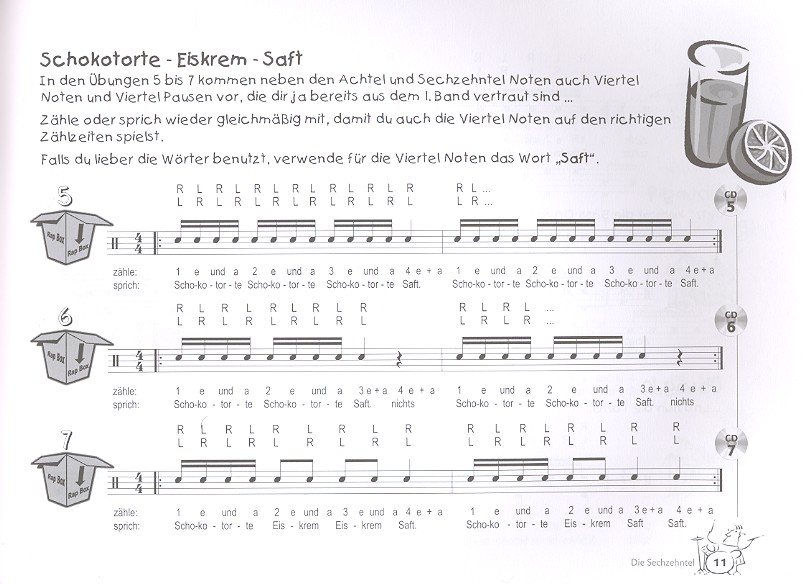 In Kräsch! Bum! Bäng! Band 2 werden mittels Lautsprache Rap-, Hip Hop- und Beat Box-übungen entwickelt, die selbst komplexe Rhythmen auf dem Drumset vermitteln. Eingeführt werden Sechzehntelnoten, Akzente, offene und geschlossene Hi Hat, Flam und Rim Click. Am Ende jedes Kapitels: Quiz und Schlagzeugsolo! Lese- und Hörproben auf www.kraesch.de