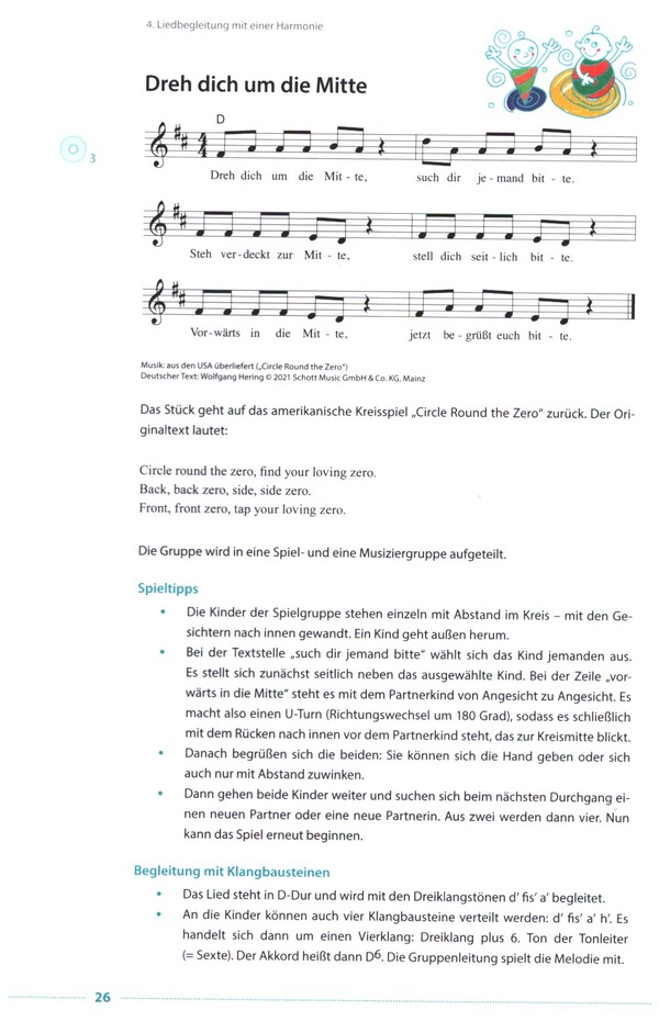 Klangbausteine sind einfach zu spielen und haben eine gute Klangqualität. Sie eignen sich hervorragend zur Liedbegleitung mit Kindergruppen. Das Buch bietet kreative, direkt umsetzbare Spielideen und viele Lieder, die ohne musikalische Vorkenntnisse auf Klangbausteinen begleitet werden können. Wolfgang Hering, Kinderliedermacher und Musikpädagoge, hat für dieses Buch zahlreiche lustige Lieder neu geschrieben und gibt nützliche methodische Tipps. 1. Einführung 2. Didaktische Hinweise 3. Einstiegsspiele mit Klangbausteinen 4. Liedbegleitung mit einer Harmonie 5. Pentatonik 6. Wechsel zwischen F-Dur und C-Dur 7. Wechsel zwischen C-Dur und G-Dur 8. Moll im Wechsel mit Dur 9. Liedbegleitung mit drei Dur-Akkorden 10. Verschiedene Harmoniewechsel 11. Alphabetisches Verzeichnis der Lieder