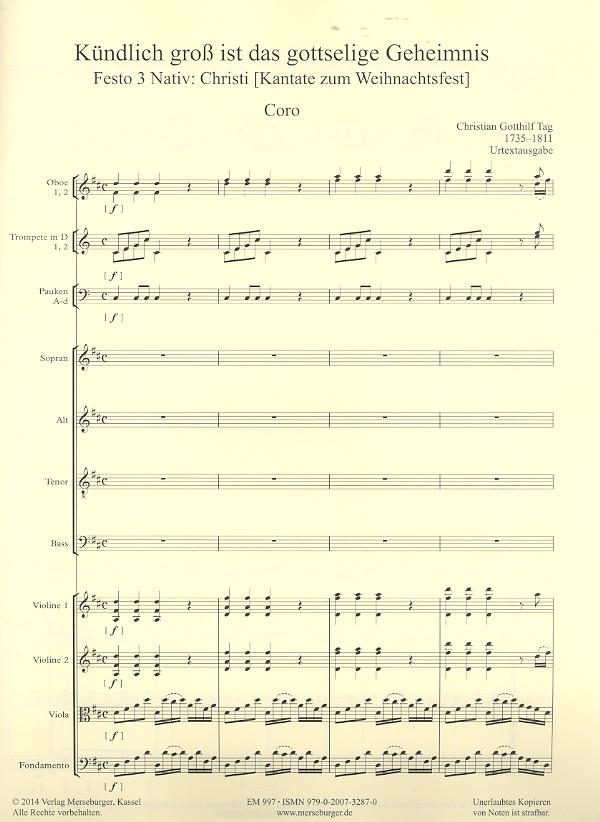 | Untertitel: | für Soli, gem Chor und Orchester Partitur |