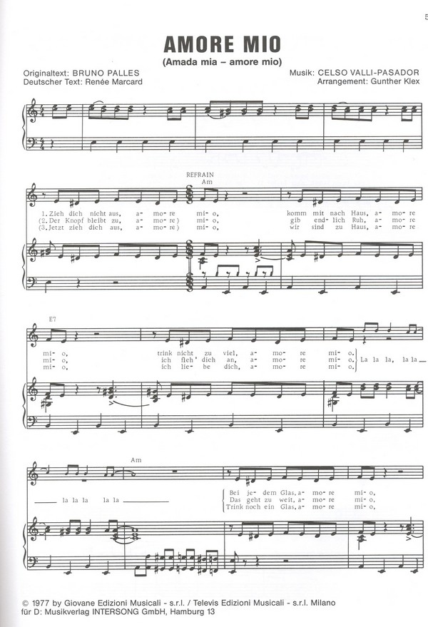 Amore, amore Amore mio Dich zu lieben Die Gefühle sind frei Es kann der frömmste nicht in Frieden leben Flieg mit mir zu den Sternen Frei das heißt allein Haut an Haut Joana Lieb mich ein letztes Mal Manchmal möchte ich schon mit dir Midnight Lady Santa Maria Schach matt Sieben Fässer Wein Wohin gehst du