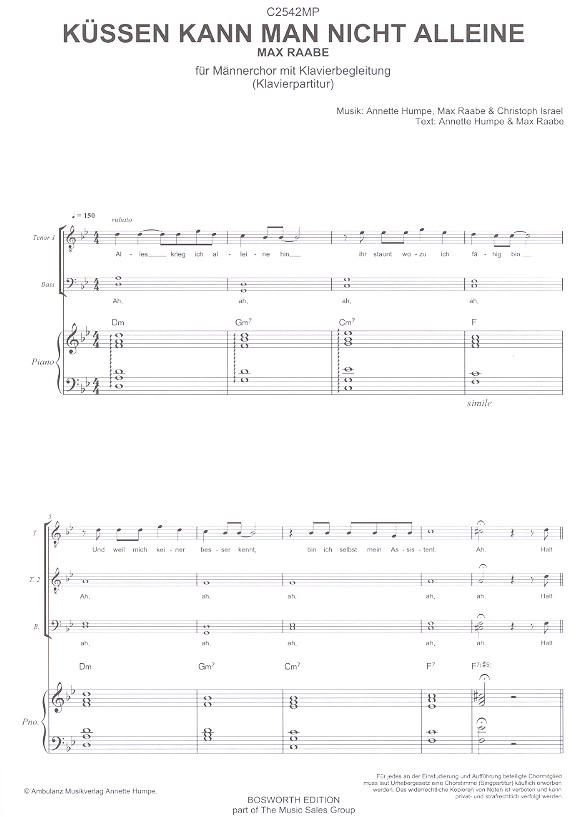 | Untertitel: | für Männerchor und Klavier Partitur und 10 Chorpartituren |