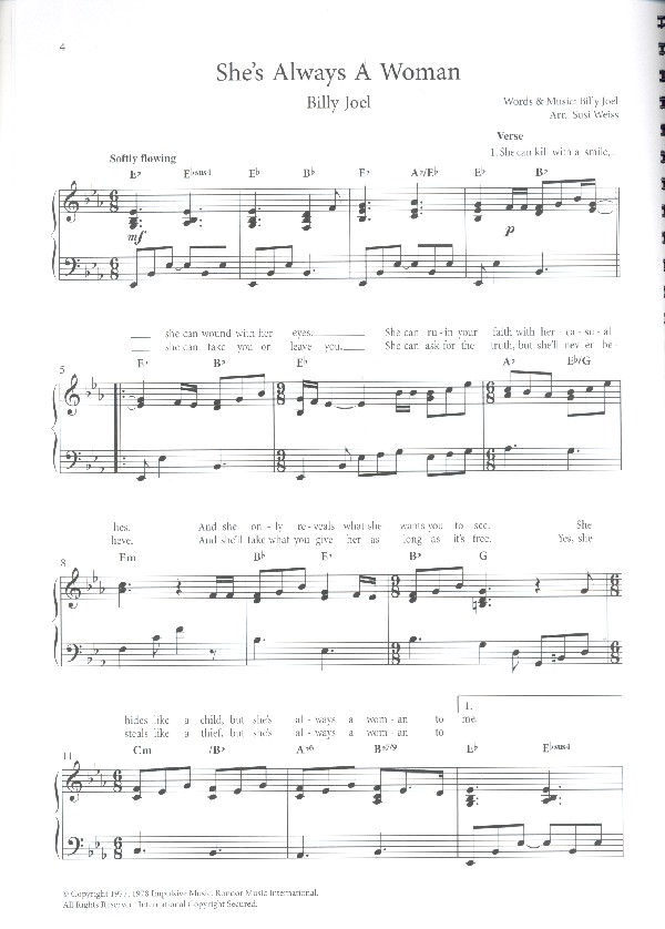 Weiss, Susi, arr. Escape (The Pina Colada Song) Him Me And Mrs. Jones Desperado Year Of The Cat You Light Up My Life Ain't No Sunshine Let It Be The Logical Song She's Always A Woman Thank You For The Music The Long And Winding Road You're So Vain I Can See Clearly Now Street Life Lovely Day Reminiscing I Don't Like Mondays September Sexy Eyes Mr. Blue Sky Spinning Wheel Three Times A Lady Easy If You Leave Me Now Goodbye Yellow Brick Road It Never Rains In Southern California Sailing Your Song When I Need You
