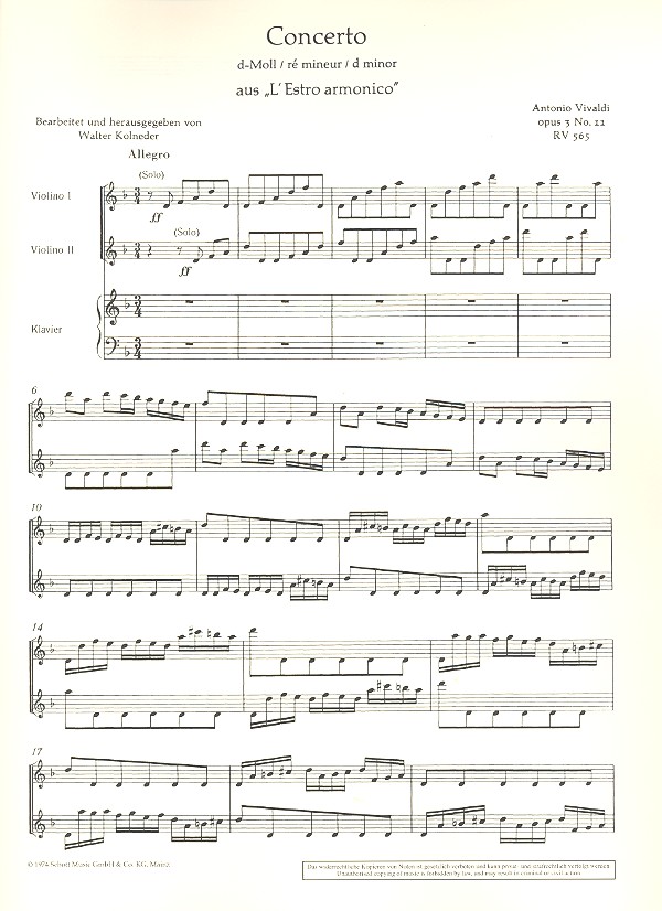 Produktinformationen "L'Estro Armonico op. 3/11 RV 565 / PV 250"