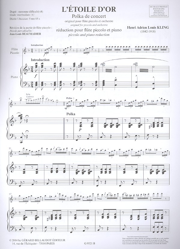 Produktinformationen "L'Étoile d'or pour flûte piccolo et orchestre"
