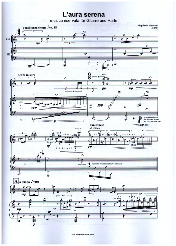 | Untertitel: | für Gitarre und Harfe Partitur und Stimmen |