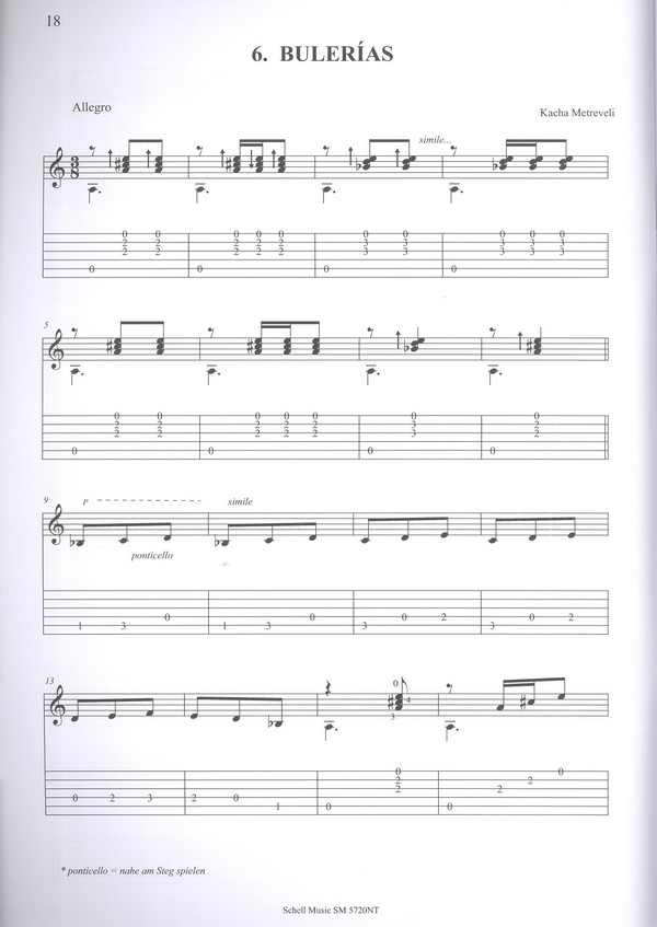 Flamenco und Klassik in leichtem bis mittleren Schwierigkeitsgrad Alegría Valse Fantasía Capricho Serenata Bulerías Los Gitanos Fiesta de la danza Bolero El sueno El noy de la mare Guitarra espanola El molino El vito Variationes Espanoleta Juego alegre