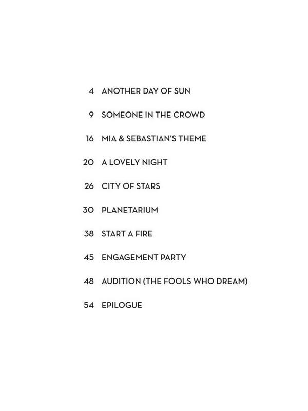 EZ play today vol.66 Pasek, Benjamin, lyrics Paul, Justin, lyrics Winner of 7 Golden Globes Awards 2017 Music from the Motion Picture Soundtrack Another Day of Sun Someone in the Crowd Mia & Sebastian's Theme A Lovely Night City of Stars Planetarium Start a Fire Engagement Party Audition (The Fools Who Dream) Epilogue