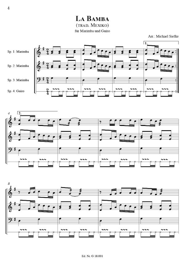 Siefke, Michael, arr. Per-cussione La Cucaracha La Bamba Cumpa chelo Margepati Lanang Manggis