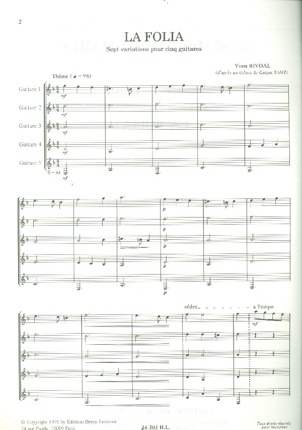 | Untertitel: | 5 guitares partition et parties |