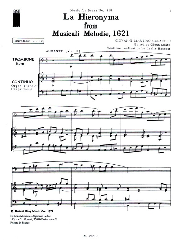 | Untertitel: | trombone (horn) and bc from musicali melodie (1621) |